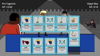Outside the Ring is a small boxing rogue-lite deck builder in which you play as the coach of a new boxing champion in the making guiding him to victory by deciding the order of its actions during fights by ordering cards in your hand during fights.